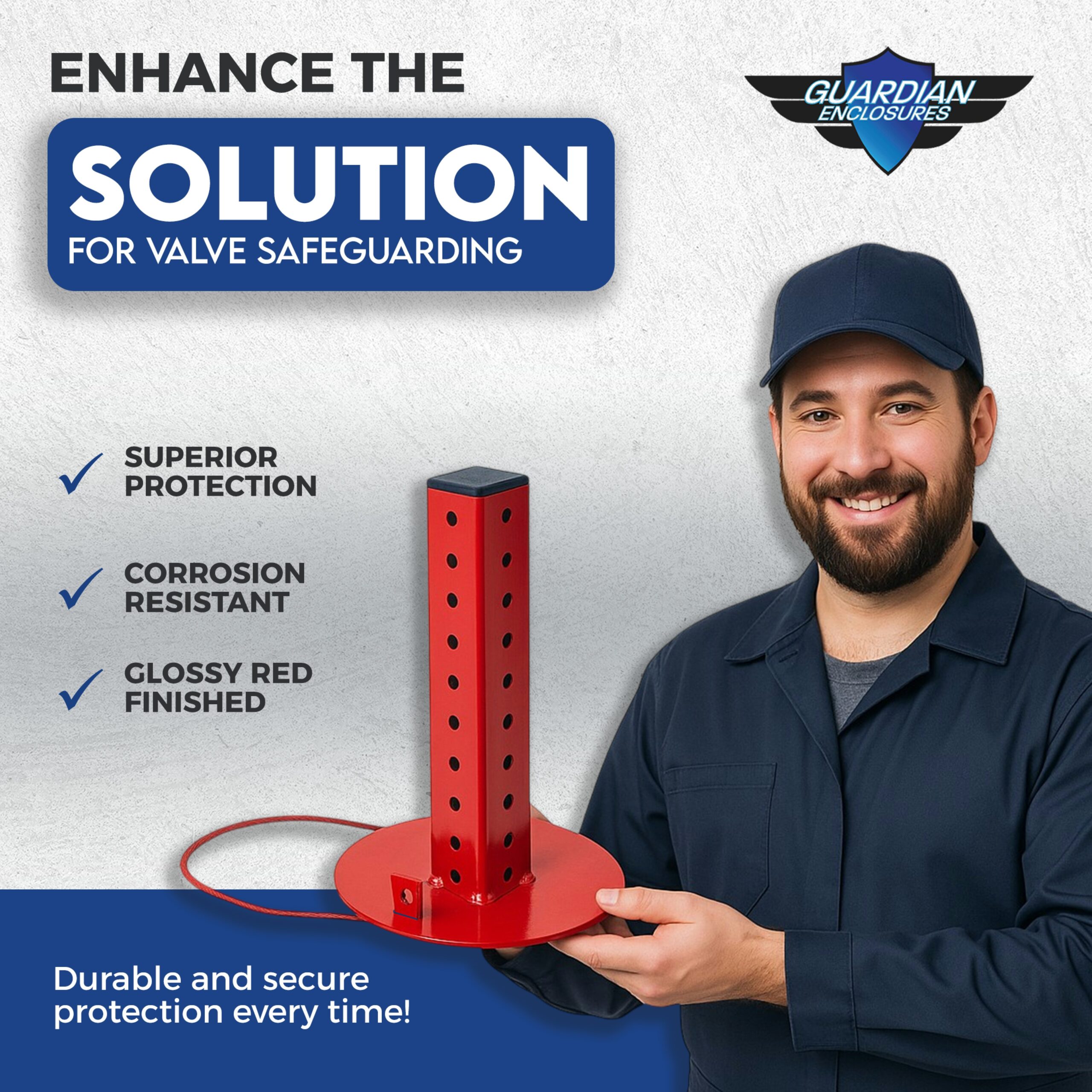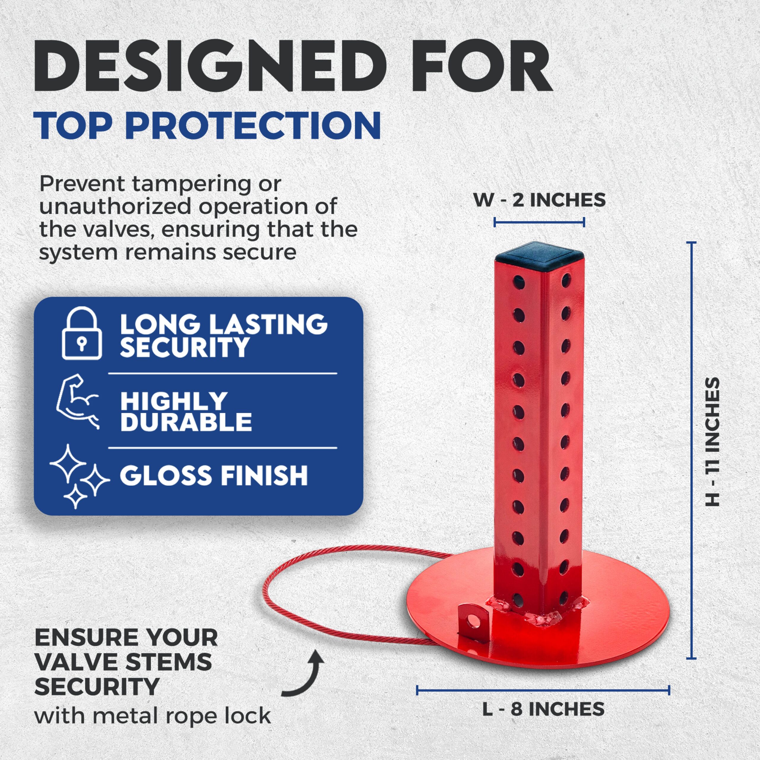 Use-case / Strength: Provides protective coverage for valve stems — useful in installations where stems are exposed and need safeguarding.