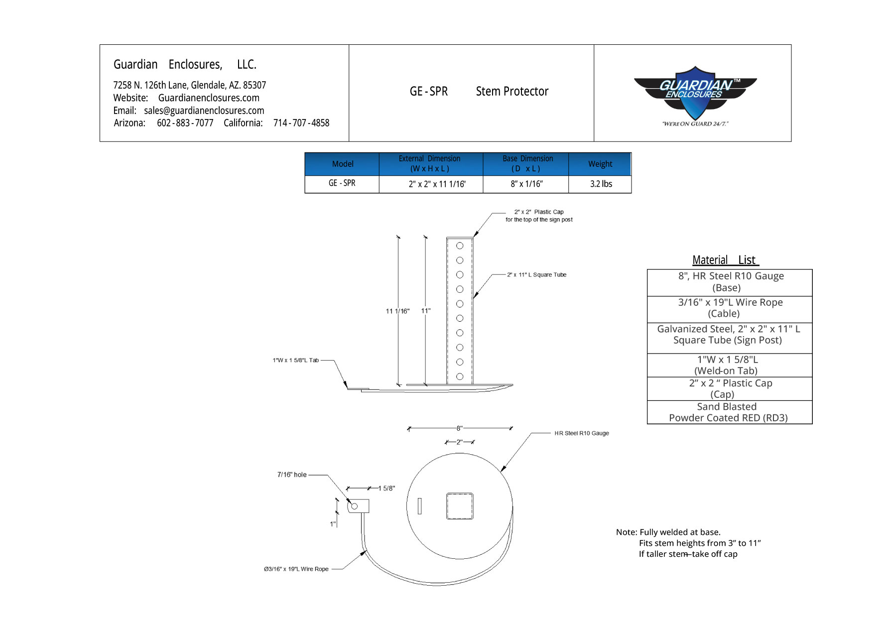Sign Post is Galvanized Steel, 2″ x 11″ L Square Tube.